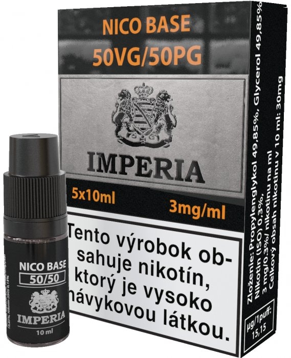 Úvod/Náplne/Báza/Báza IMPERIA fifty 5x10ml PG50-VG50Báza IMPERIA fifty 5x10ml PG50-VG50ID produktu1000144Vyberte si svoju intenzitu nikotínu:3 mg6 mg12 mg19.00 €Cenaskladom ks Vložiť do košíkaPredpokladané doručenie tohto tovaru pri objednaní teraz je za 5 dní 4.11.2025 v utorok. V rámci Košíc a okolia pri objednávkach do 13:00 hod. doručenie v ten istý deň.Doprava už od 3€, pri nákupe nad 35€ je doprava ZADARMO