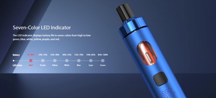 Ego AIO 2 prichádza v novom vylepšenom dizajne s jedným článkom s kapacitou 1700 mAh, rýchlym USB-C nabíjaním, LED indikátorom stavu nabitia a, čo je najdôležitejšie, atomizérom BFC Mesh s odporom 0,8 ohmu. Tento futuristický atomizér má bočné a spodné vstupy pre e-liquid, ktoré zabezpečujú konzistentnú a dlhotrvajúcu chuť e-liquidu. Atomizér BFC je plne kompatibilný s pôvodnou verziou atomizéra BF. Odnímateľná horná časť je vybavená detským bezpečnostným zámkom = ochrana proti náhodnému otvoreniu a slúži aj ako regulátor prúdu vzduchu pre atomizér.